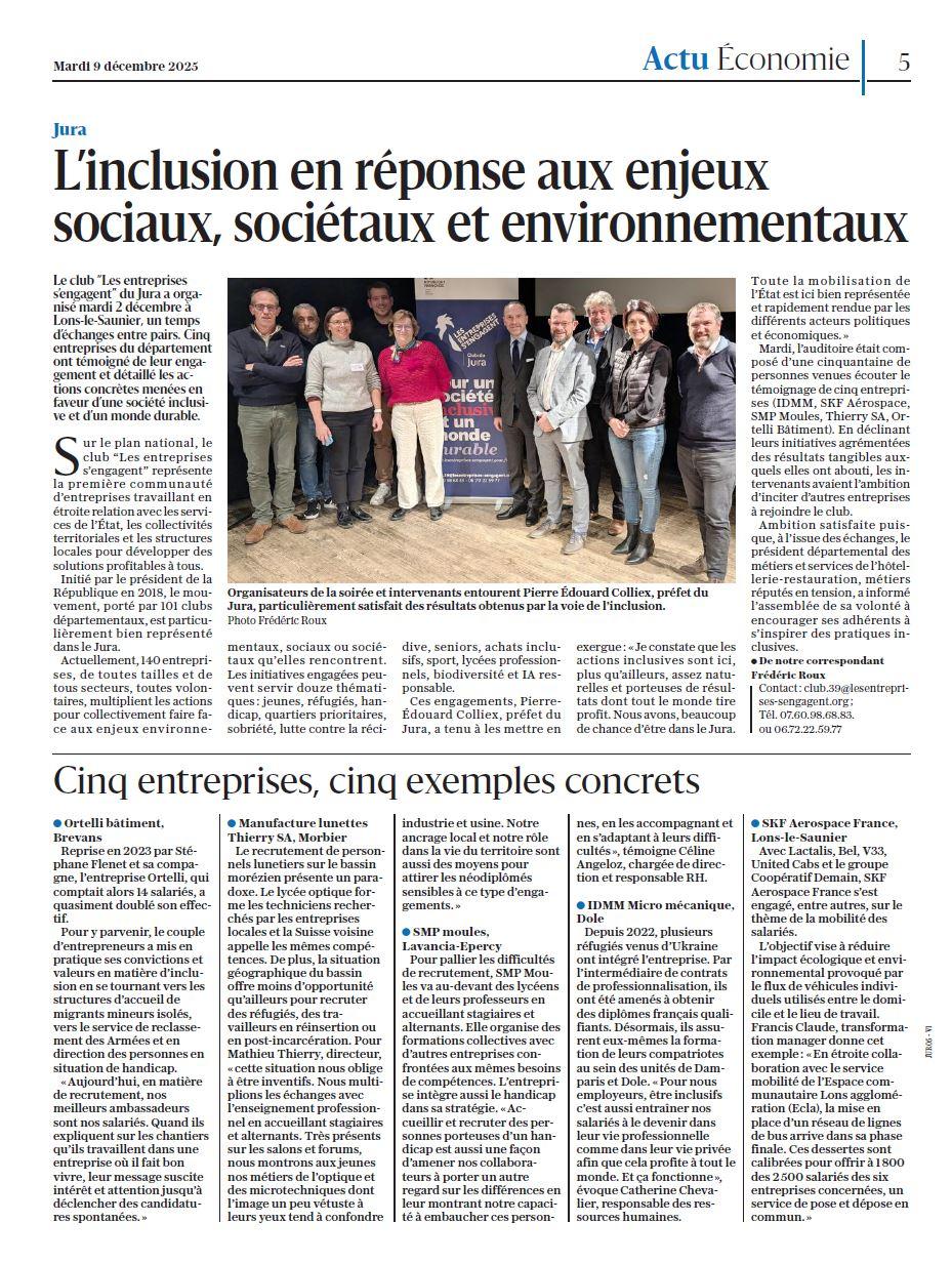Article de presse, Le Progrès : un beau retour de l'évènement "le Jura s'engage" du 02 décembre 2025